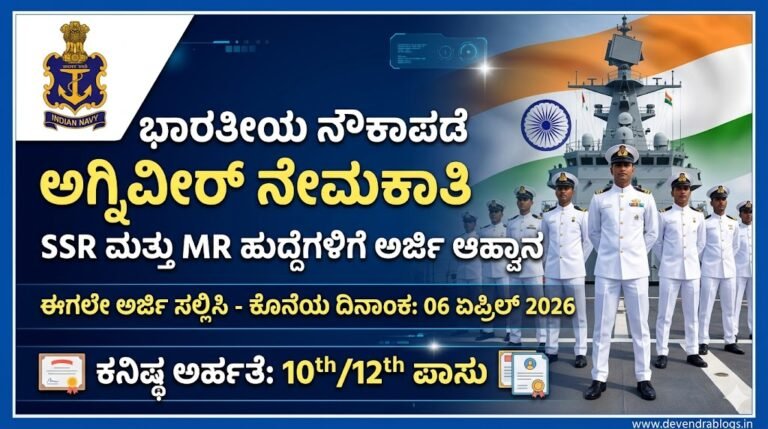 ಭಾರತೀಯ ನೌಕಾಪಡೆ ಅಗ್ನಿವೀರ್ ನೇಮಕಾತಿ 2027: ಯುವಜನತೆಗೆ ದೇಶಸೇವೆಯ ಸುವರ್ಣಾವಕಾಶ! ಭಾರತೀಯ ಸಶಸ್ತ್ರ ಪಡೆಗಳಲ್ಲಿ ಒಂದಾದ ನೌಕಾಪಡೆಯಲ್ಲಿ (Indian Navy) ವೃತ್ತಿಜೀವನವನ್ನು ರೂಪಿಸಿಕೊಳ್ಳಲು ಬಯಸುವ ಅಭ್ಯರ್ಥಿಗಳಿಗೆ ಇಲ್ಲಿದೆ …