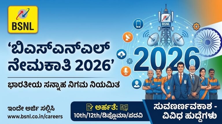 BSNL Recruitment 2026: 120 Senior Executive Trainee ಹುದ್ದೆಗಳ ನೇಮಕಾತಿ – ₹50,000 ವೇತನ ಭಾರತದ ಪ್ರಮುಖ ಸರ್ಕಾರಿ ದೂರಸಂಪರ್ಕ ಸಂಸ್ಥೆಯಾದ BSNL (Bharat Sanchar …