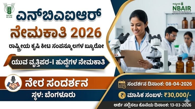 NBAIR Recruitment 2026: ಬೆಂಗಳೂರಿನಲ್ಲಿ ಪದವೀಧರರಿಗೆ ಉದ್ಯೋಗ; ಪರೀಕ್ಷೆ ಇಲ್ಲದೆ ನೇರ ಆಯ್ಕೆ! ನೀವು ಬೆಂಗಳೂರಿನಲ್ಲಿ ವಾಸವಿದ್ದೀರಾ? ಕೃಷಿ ಅಥವಾ ತಾಂತ್ರಿಕ ಕ್ಷೇತ್ರದಲ್ಲಿ ಉದ್ಯೋಗ ಹುಡುಕುತ್ತಿದ್ದೀರಾ? ಹಾಗಿದ್ದರೆ …
