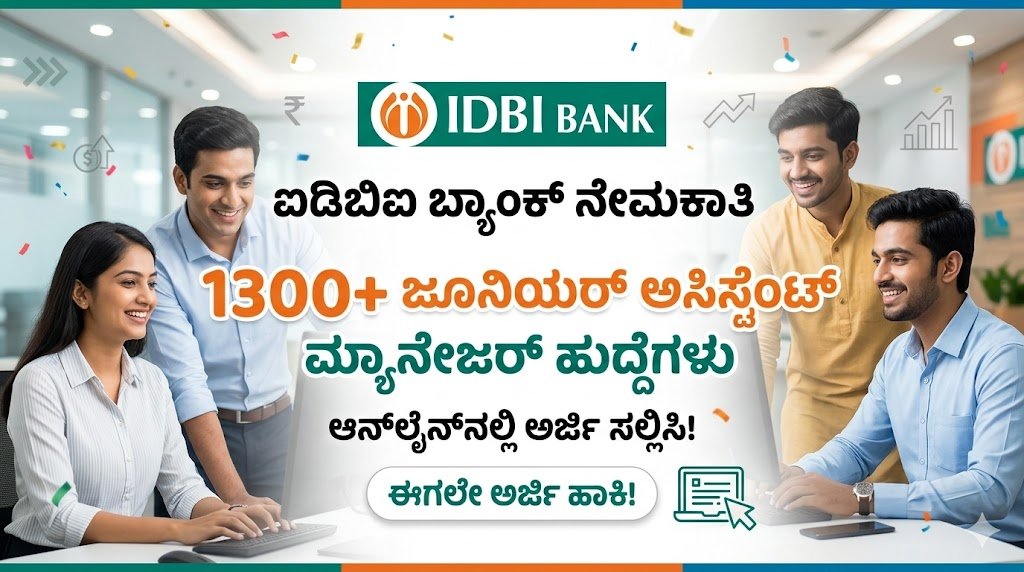 IDBI ಬ್ಯಾಂಕ್ ನೇಮಕಾತಿ 2026: 1300 ಜೂನಿಯರ್ ಅಸಿಸ್ಟೆಂಟ್ ಮ್ಯಾನೇಜರ್ ಹುದ್ದೆಗಳು